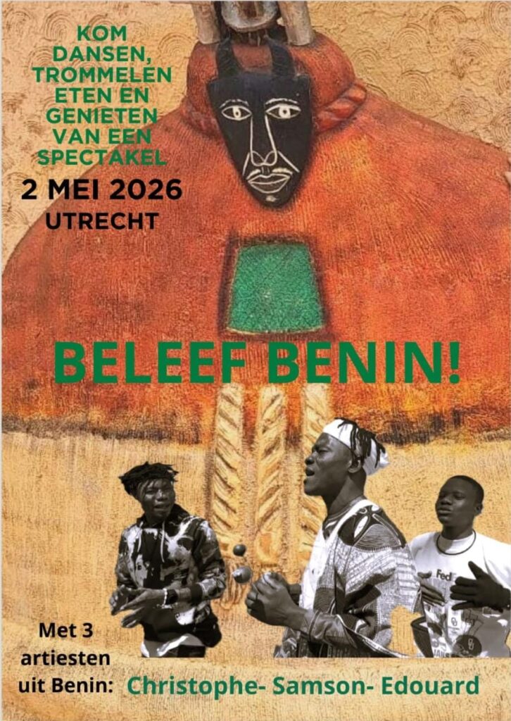 We hopen je die dag te verwelkomen, want het komt niet vaak voor dat we deze drie fijne Béninse artiesten tegelijkertijd samen hebben en we dus kunnen genieten van een werkelijke Béninse poly-ritmische vibe!